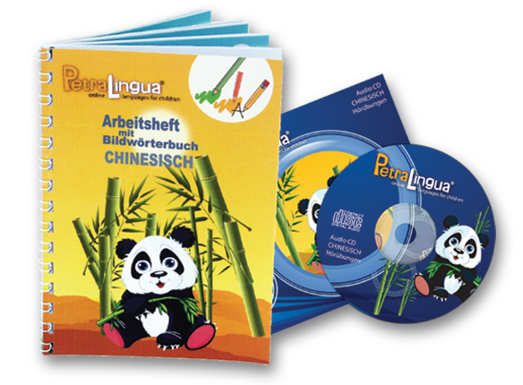 Mit dem kompletten PetraLingua® Chinesisch für Kinder Set können die Kinder jetzt unsere bunten Chinesisch Lernvideos auf dem Fernseher genießen, alle Lieder vom Kurs auf dem CD Player abspielen und das Gelernte in ihrem Chinesisch-Arbeitsheft üben!