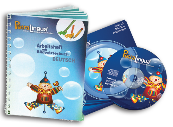 Mit dem kompletten PetraLingua® Deutsch für Kinder Set können die Kinder jetzt unsere bunten Deutsch Lernvideos auf dem Fernseher genießen, alle Lieder vom Kurs auf dem CD Player abspielen und das Gelernte in ihrem Deutsch-Arbeitsheft üben!