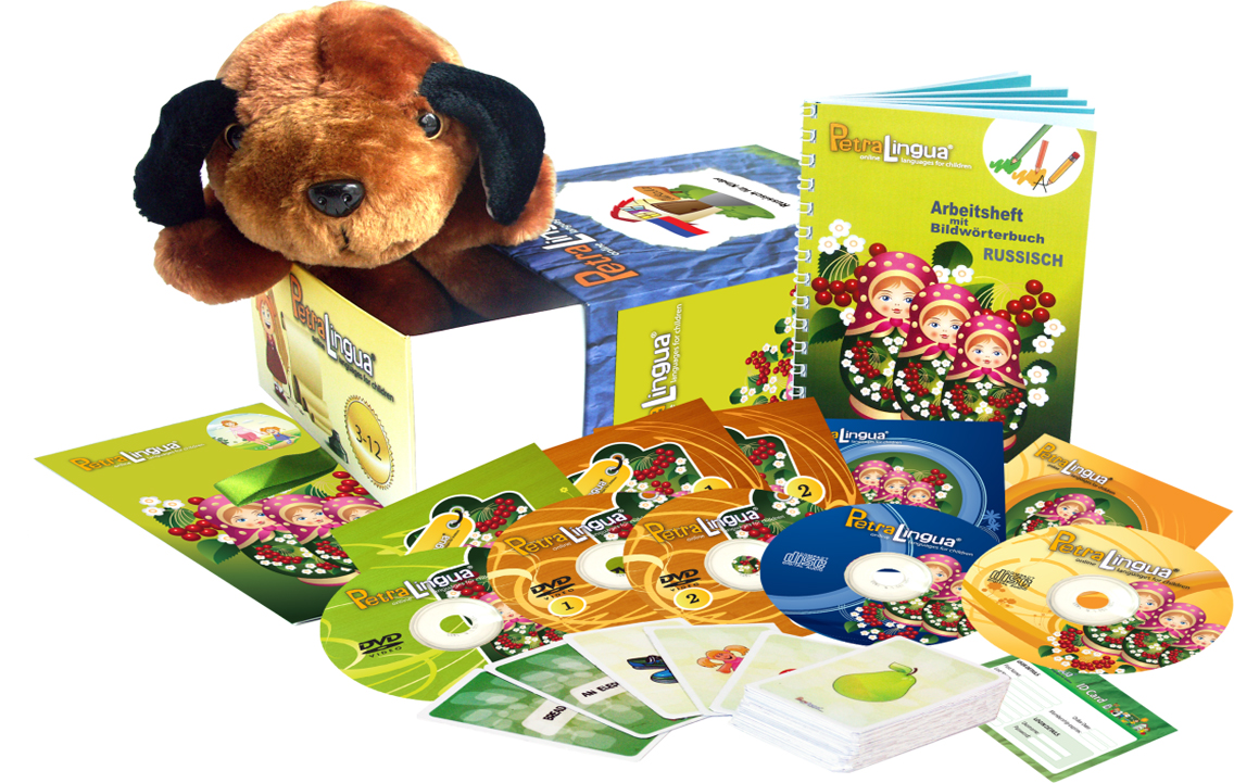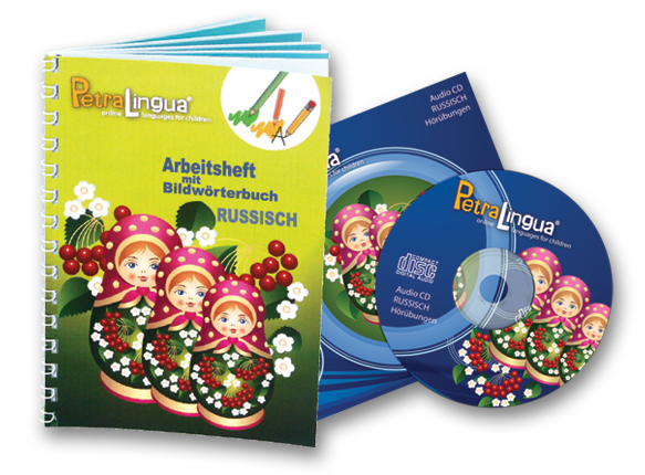 Mit dem kompletten PetraLingua® Russisch für Kinder Set können die Kinder jetzt unsere bunten Russisch Lernvideos auf dem Fernseher genießen, alle Lieder vom Kurs auf dem CD Player abspielen und das Gelernte in ihrem Russisch-Arbeitsheft üben!