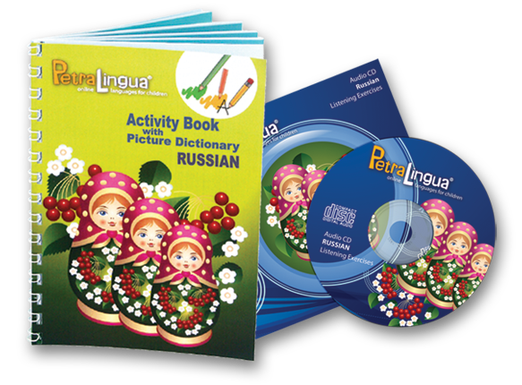 With the complete PetraLingua® Russian for kids set your kids are now able to enjoy our colorful Russian learning videos on DVD, listen to all the songs from the course on CD and practice what they have learned with their Russian activity books!