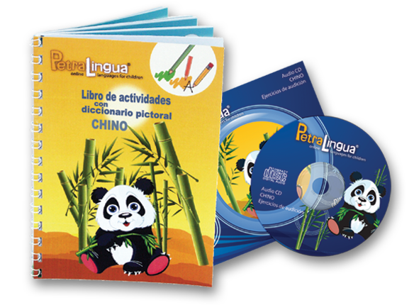 Con el Completo serie PetraLingua® Chino para niños sus hijos pueden ahora disfrutar de nuestros vídeos coloridos del aprendizaje de chino en DVD, escuchar todas las canciones del curso en CD y practicar lo que han aprendido con sus libros de actividades de chino!
