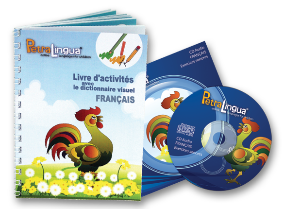 With the complete PetraLingua® English for kids set your kids are now able to enjoy our colorful English learning videos on DVD, listen to all the songs from the course on CD and practice what they have learned with their English activity books!