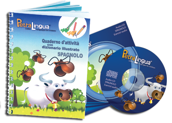 Con il set PetraLingua® Spagnolo per bambini, i più piccoli potranno godersi i nostri colorati video spagnoli su DVD, ascoltare tutte le canzoni del corso sul CD player e praticare cosa hanno imparato con il loro quaderno degli esercizi Spagnolo.