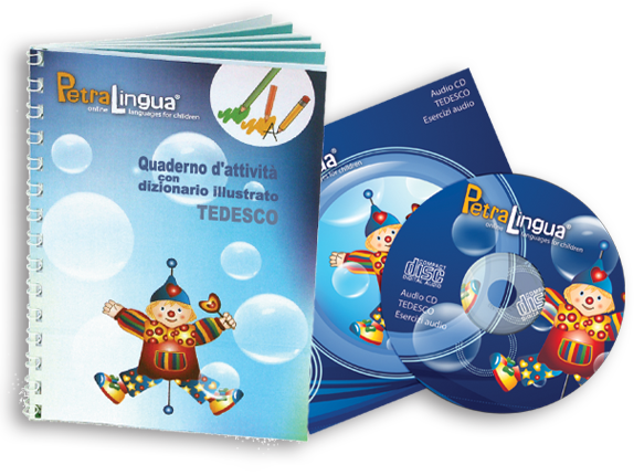 Con il set PetraLingua® Tedesco per bambini, i più piccoli potranno godersi i nostri colorati video tedeschi su DVD, ascoltare tutte le canzoni del corso sul CD player e praticare cosa hanno imparato con il loro quaderno degli esercizi Tedesco.