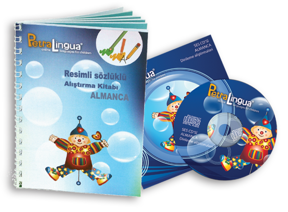 Komple PetraLingua® multimedya Almanca öğrenme setiyle çocuklar şimdi DVD'deki renkli Almanca öğrenme videolarının keyfini çıkarabiliyor, kurs CD'sinden şarkıları dinleyebiliyor ve Almanca alıştırma kitaplarından öğrendiklerini uygulayabiliyor!